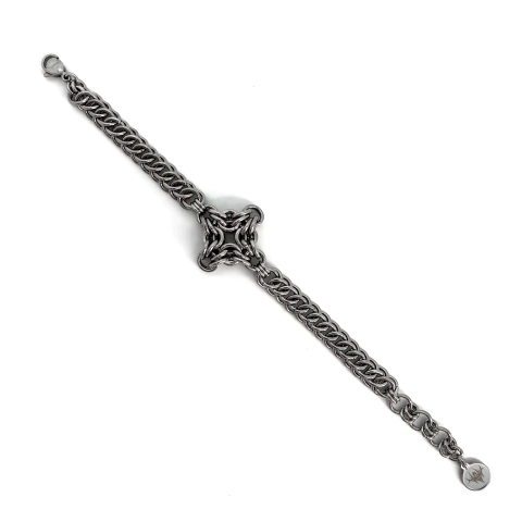 Pulseira feita de cota de malha 100% aço inoxidável.